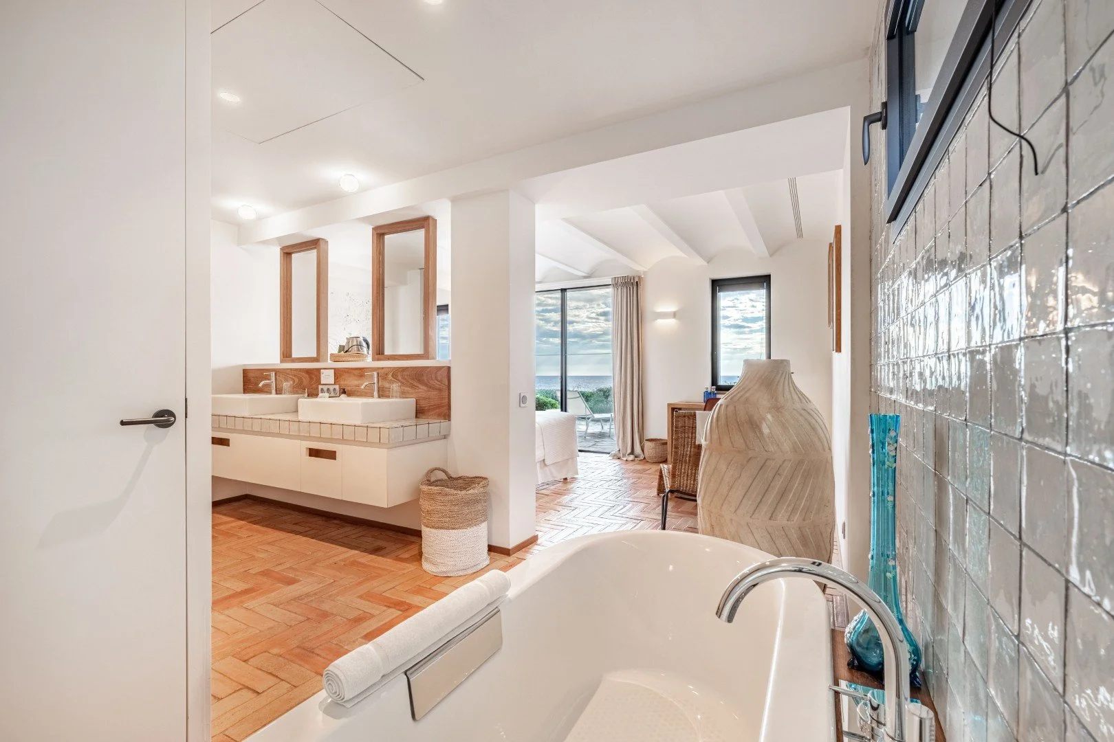 The house features ten bedrooms, nine of which offer breathtaking sea views. Each comes with an en-suite bathroom and premium bedding, designed to ensure absolute comfort.